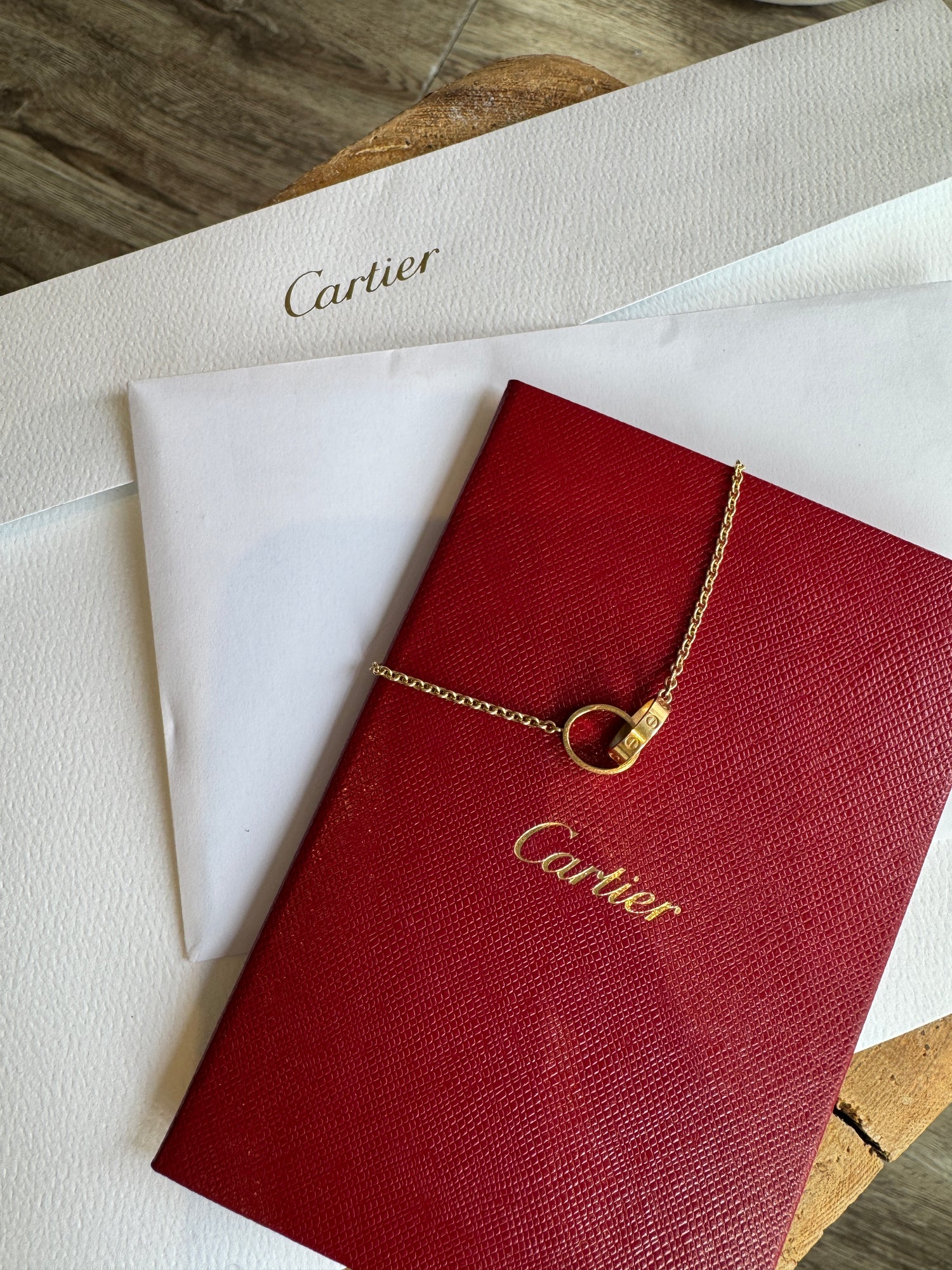 Excellent condition Cartier gold Love bracelet on chain.