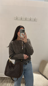 Excellent condition handbag. Some minor markings on suede and hardware. Some markings on both sides of leather shoulder strap. 2012.