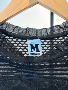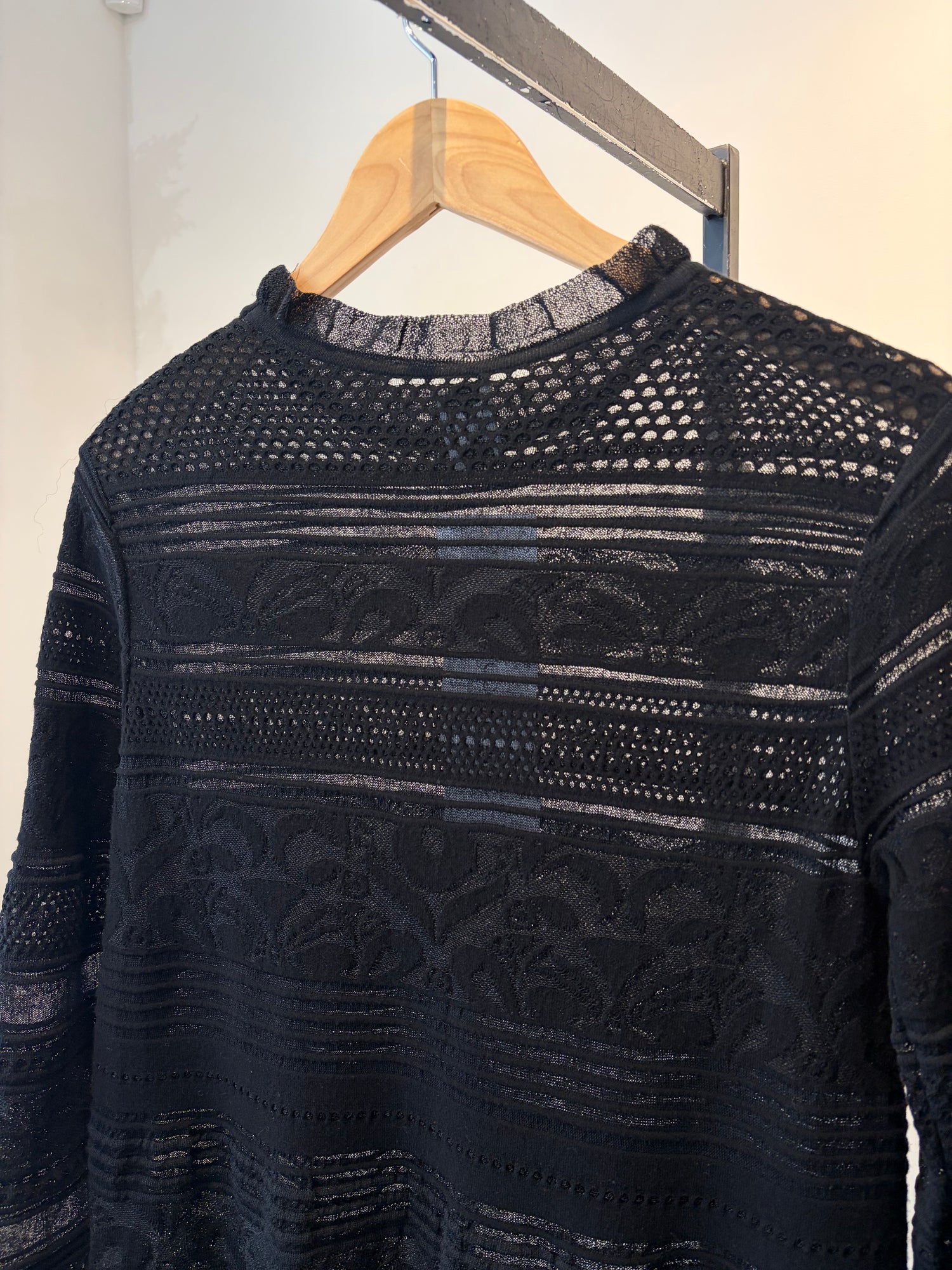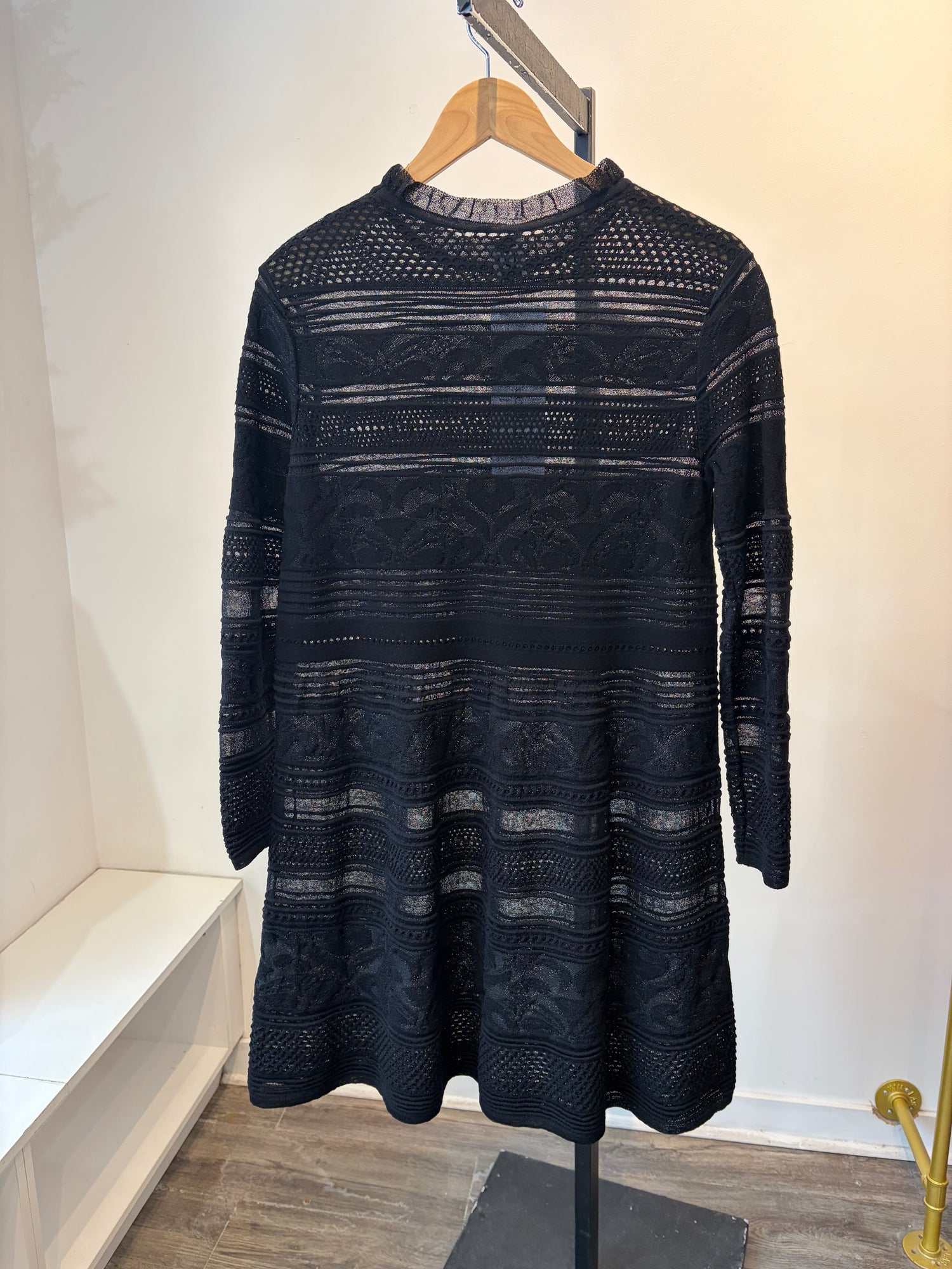 Missoni ruffle neckline knit long sleeve dress, Black, M/L