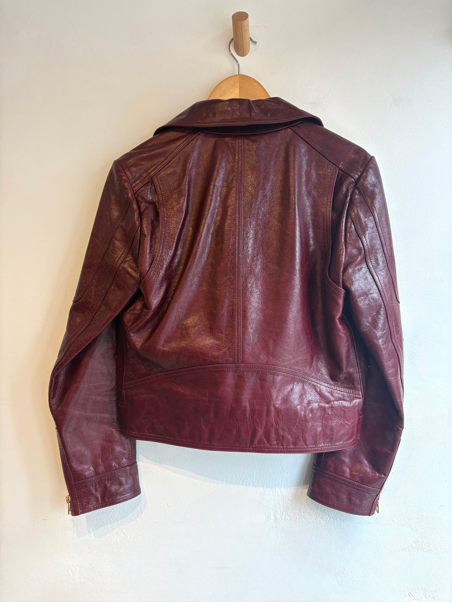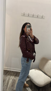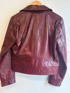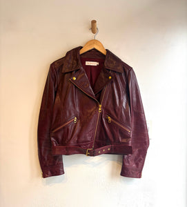 Genuine leather deep red biker jacket by Tory Burch. Fits smaller (size 6/8 best). Excellent like new condition!