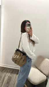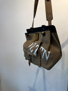 Excellent condition canvas + leather handbag by Valentino. Protective covering still intact on some interior hardware.