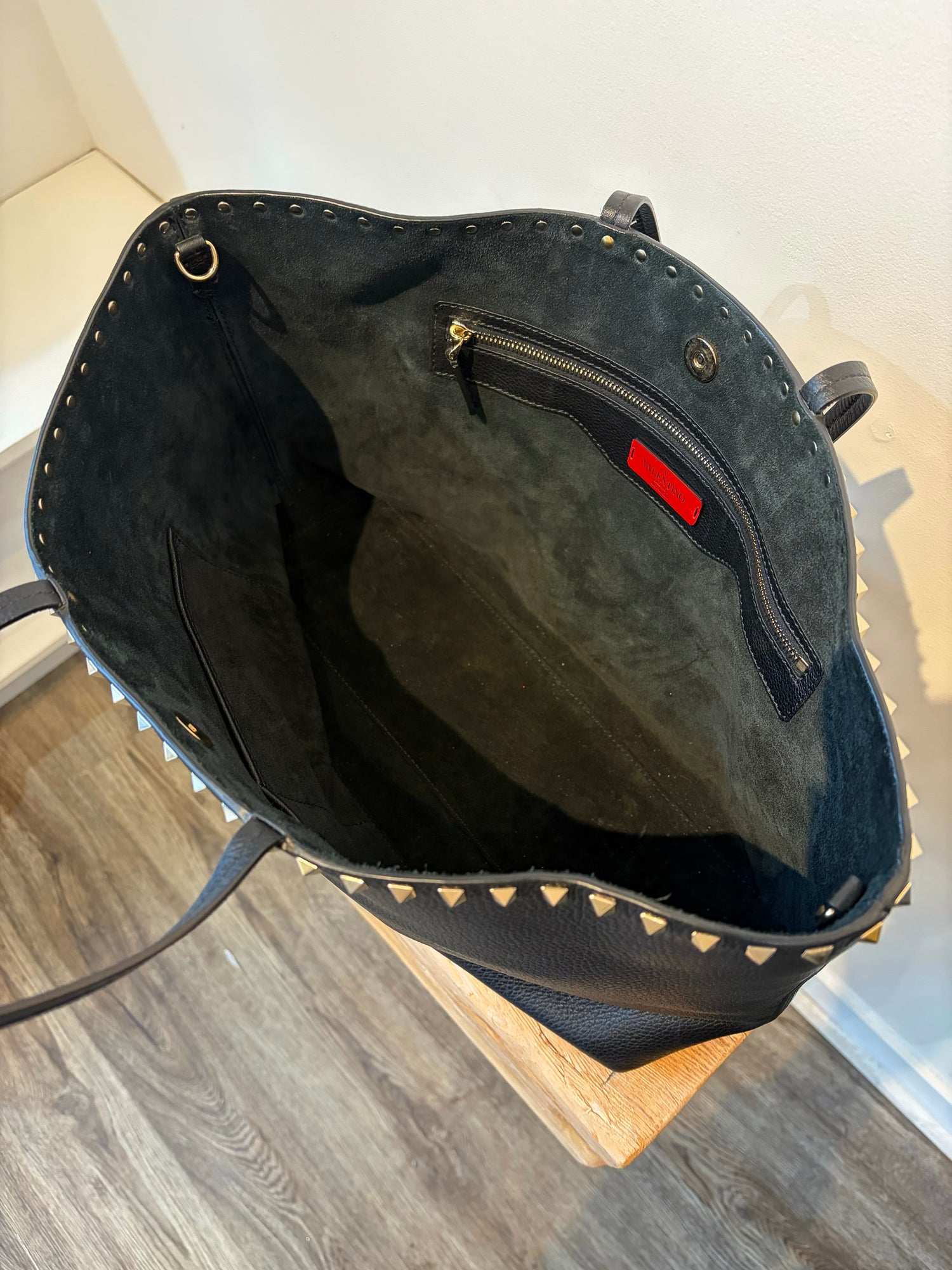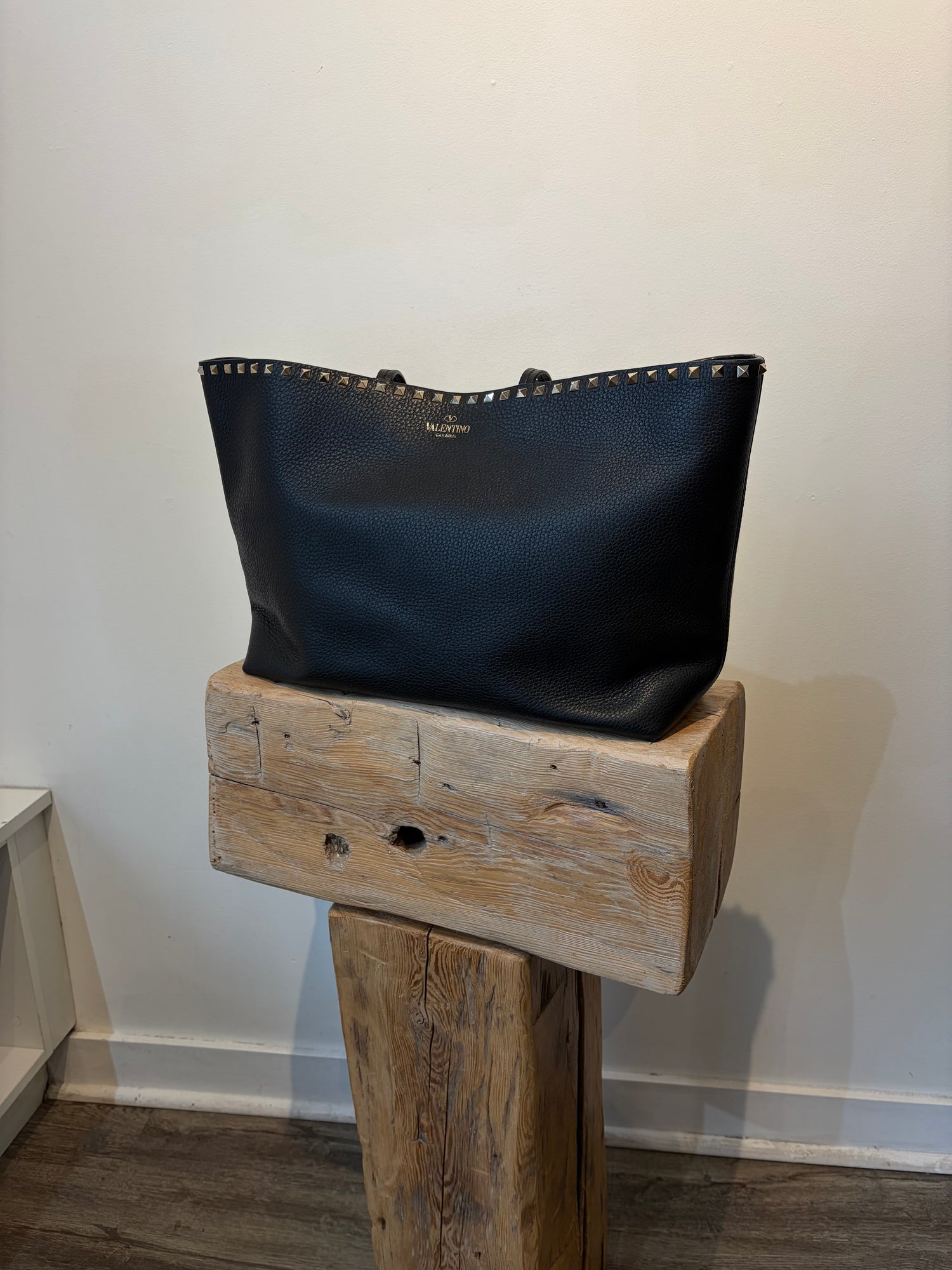Valentino Garavani Rockstud Leather Tote Bag, Black/Gold