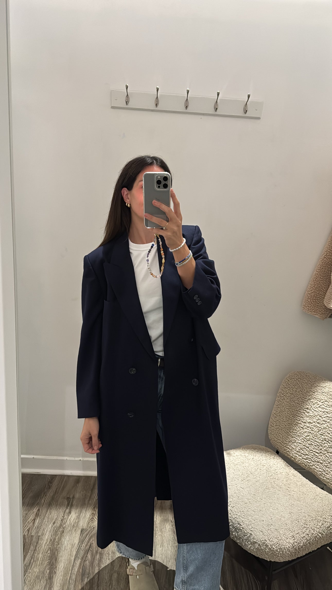 Aquascutum Vintage Wool Double Breasted Coat Jackets Navy, 14