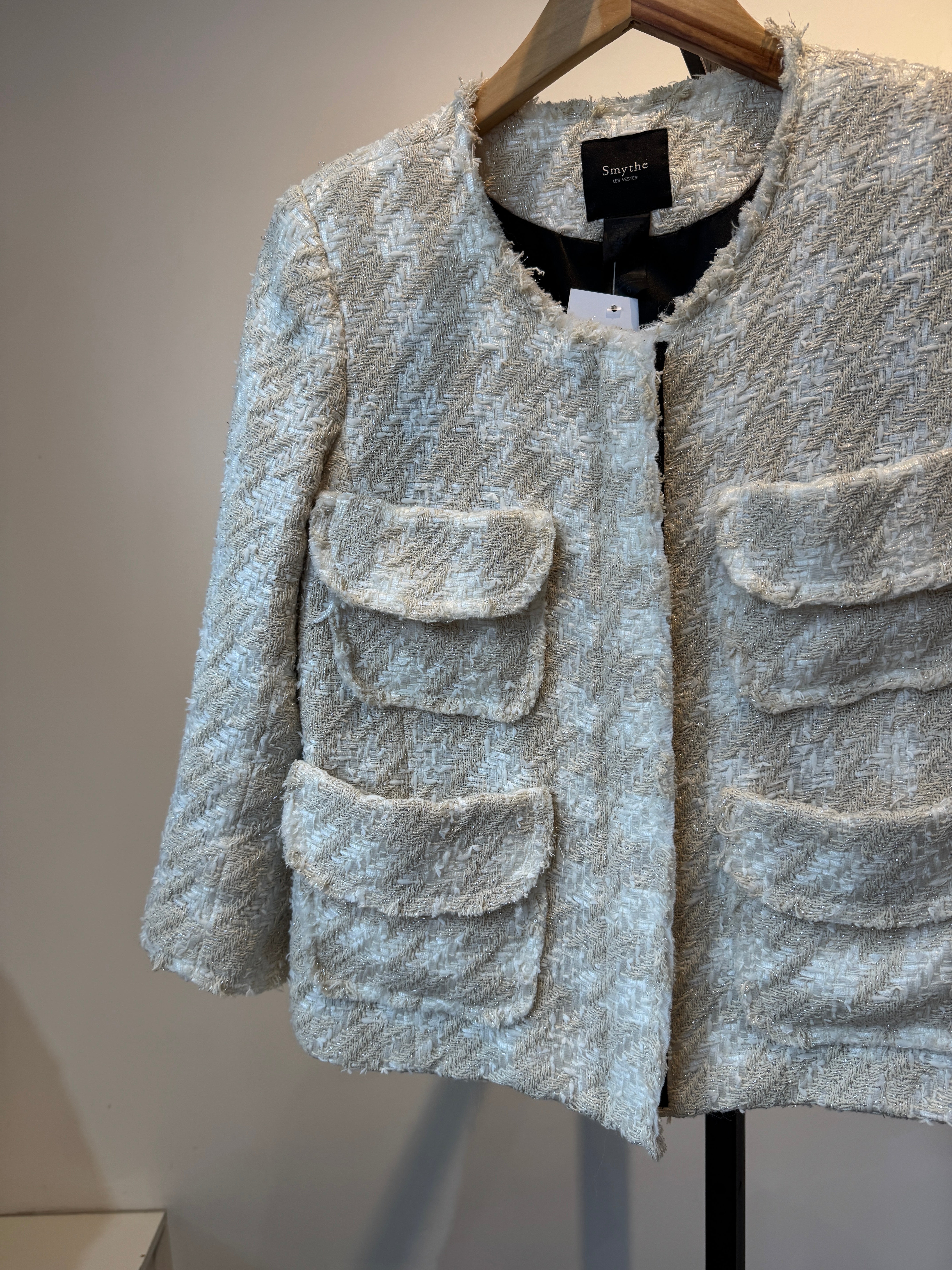 Smythe Metallic Tweed Blazer Cream, 6