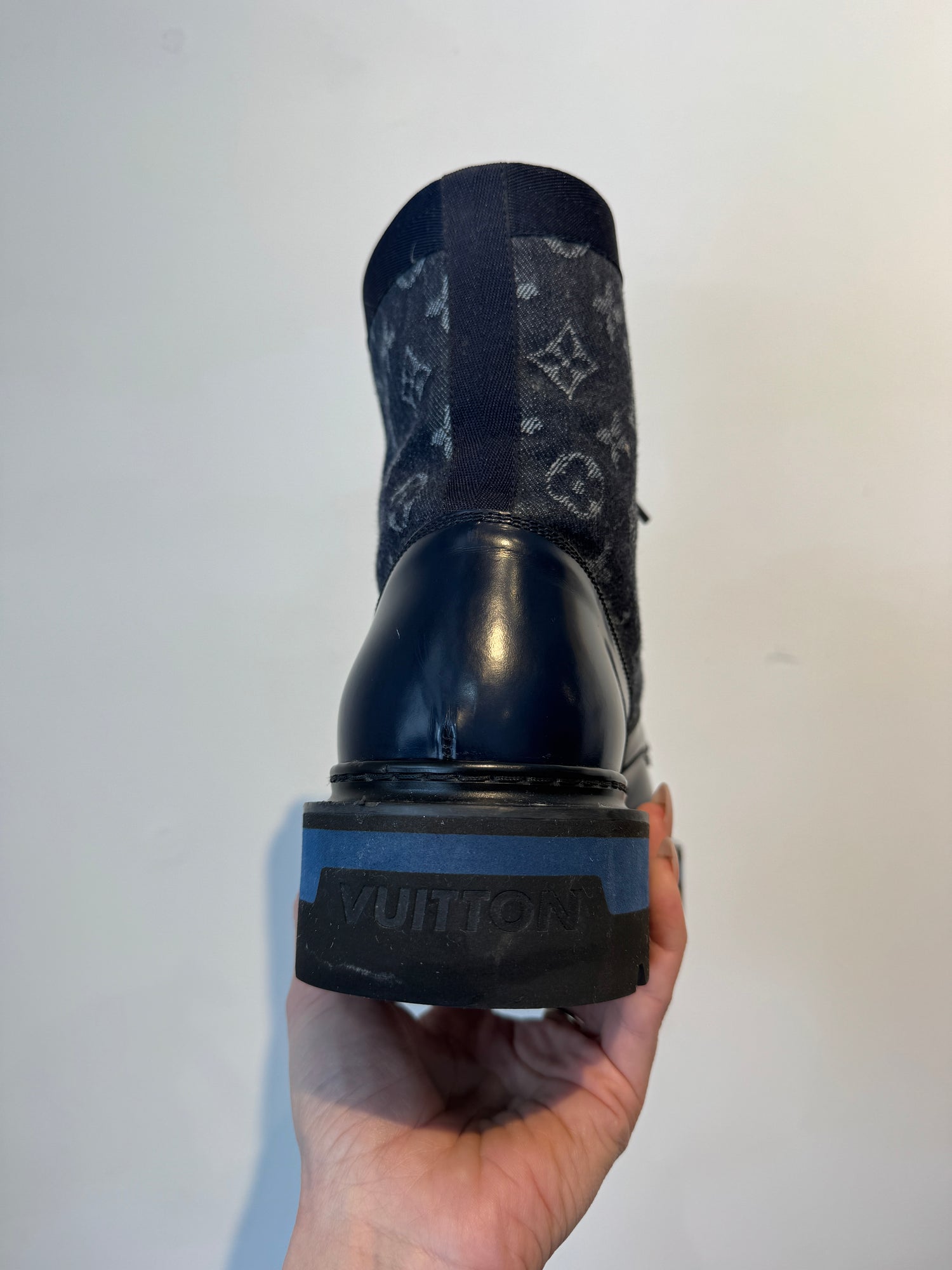Great, minimally worn condition LV navy leather + denim monogram men’s Ranger boots.