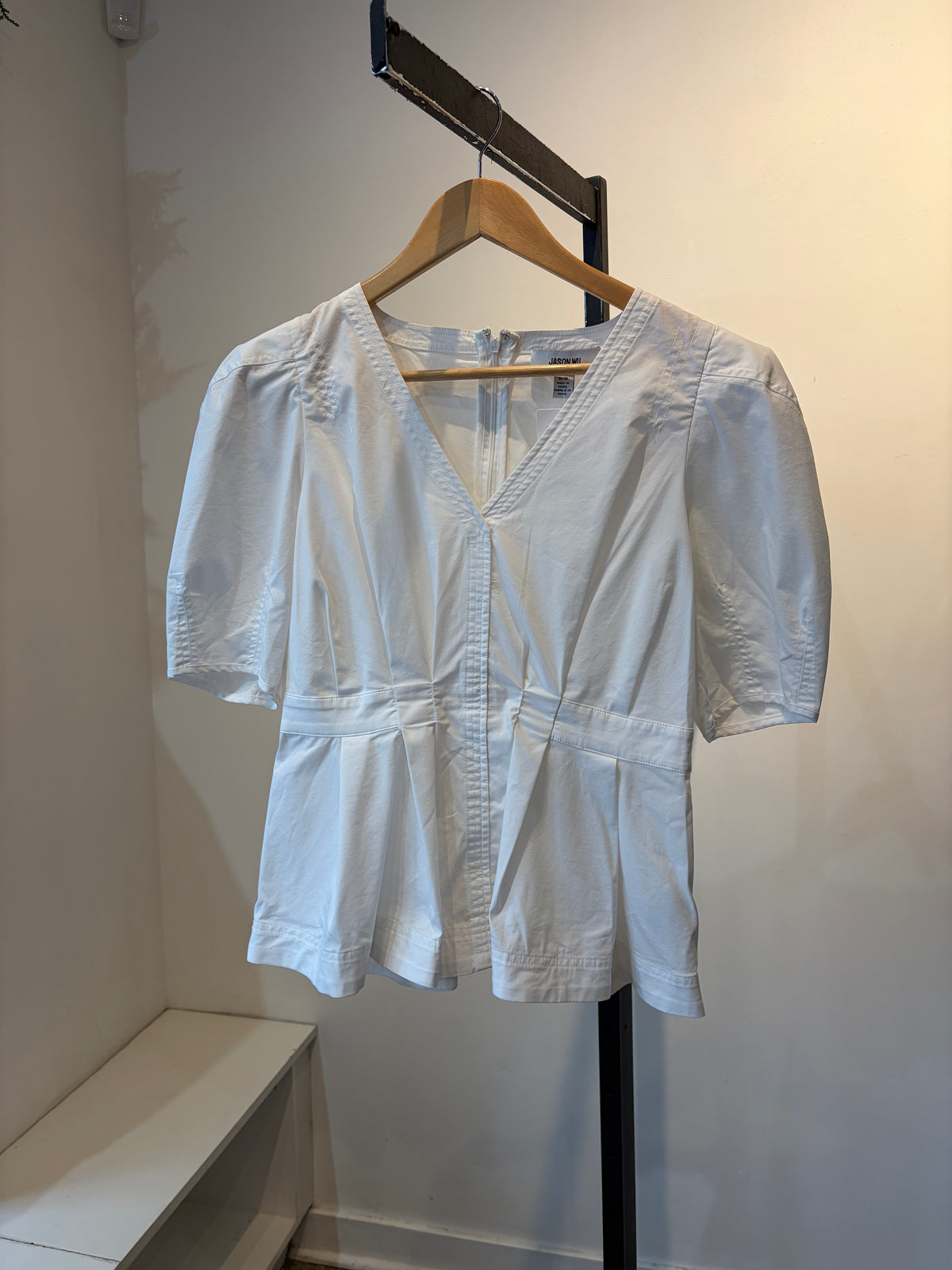 Jason Wu Cotton Peplum Puff Sleeve Blouse, White, Medium