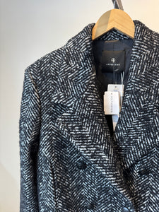 Anine Bing Vienna Double Breasted Herringbone Blazer, Black, XS