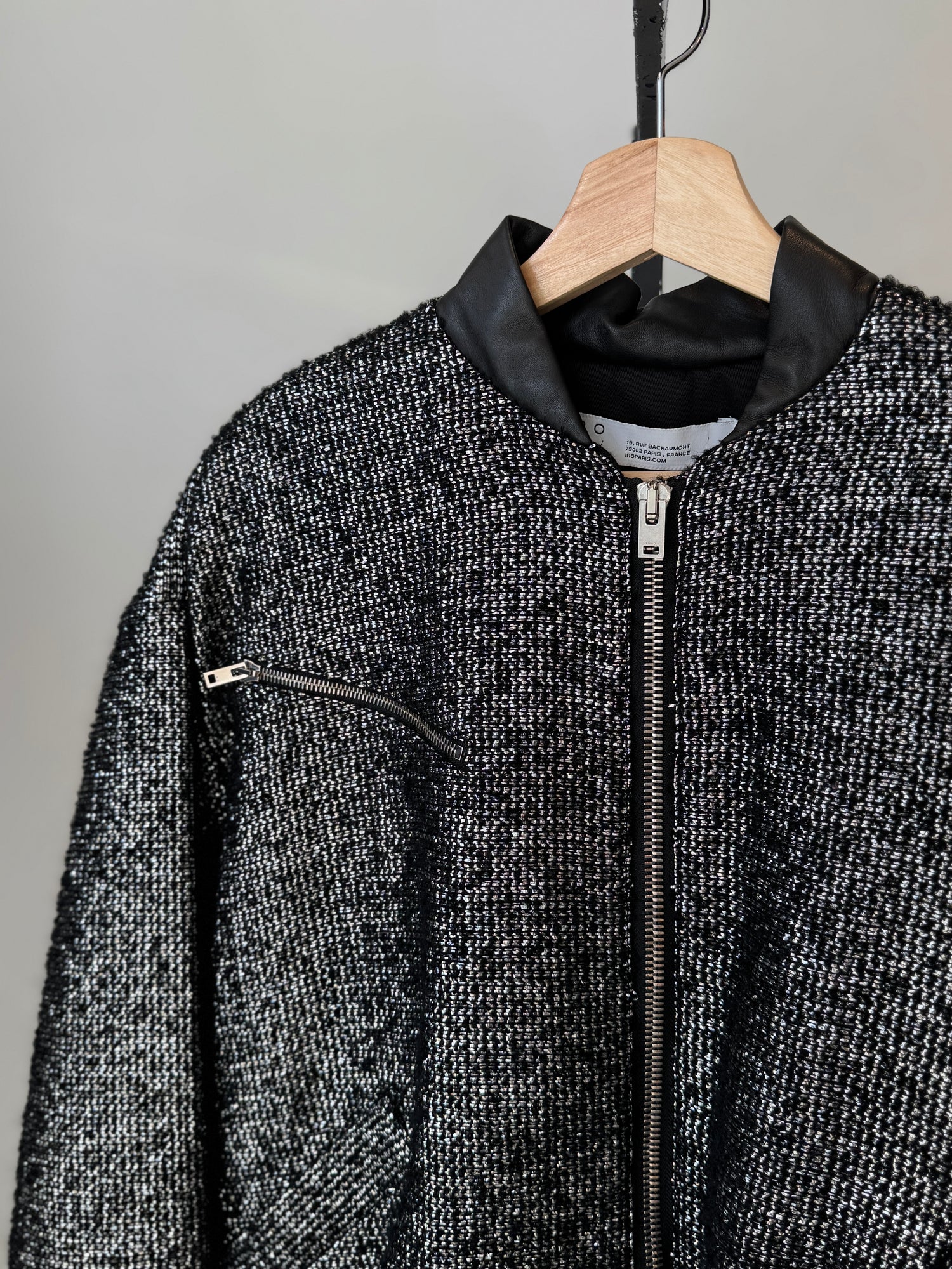 IRO Metallic Tweed Bomber Jacket Black, 36