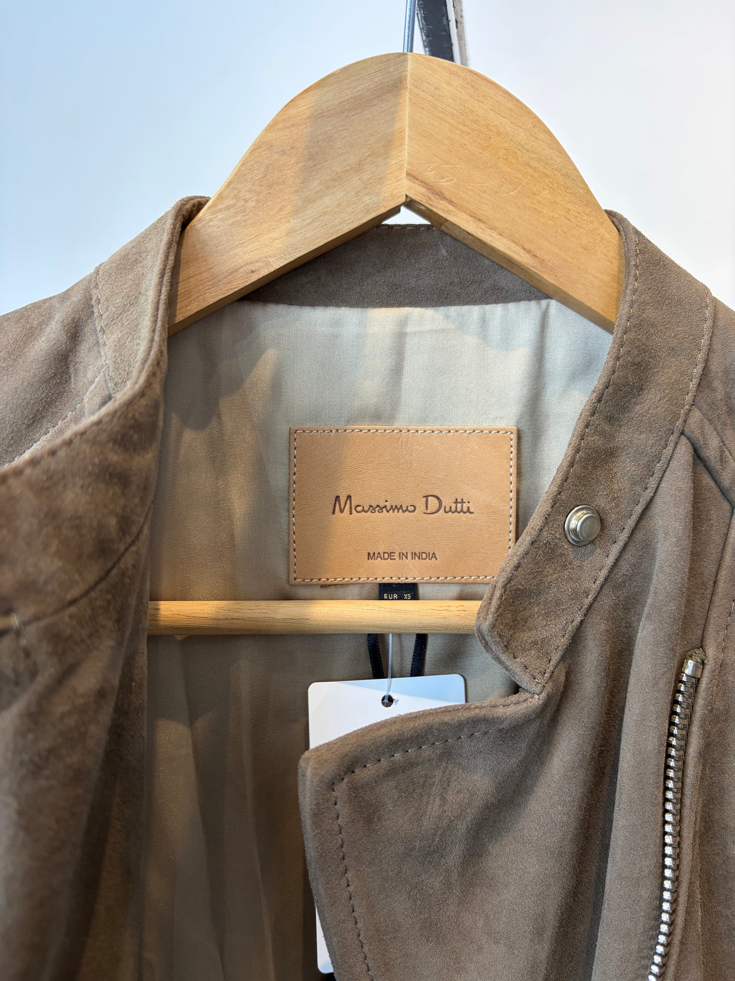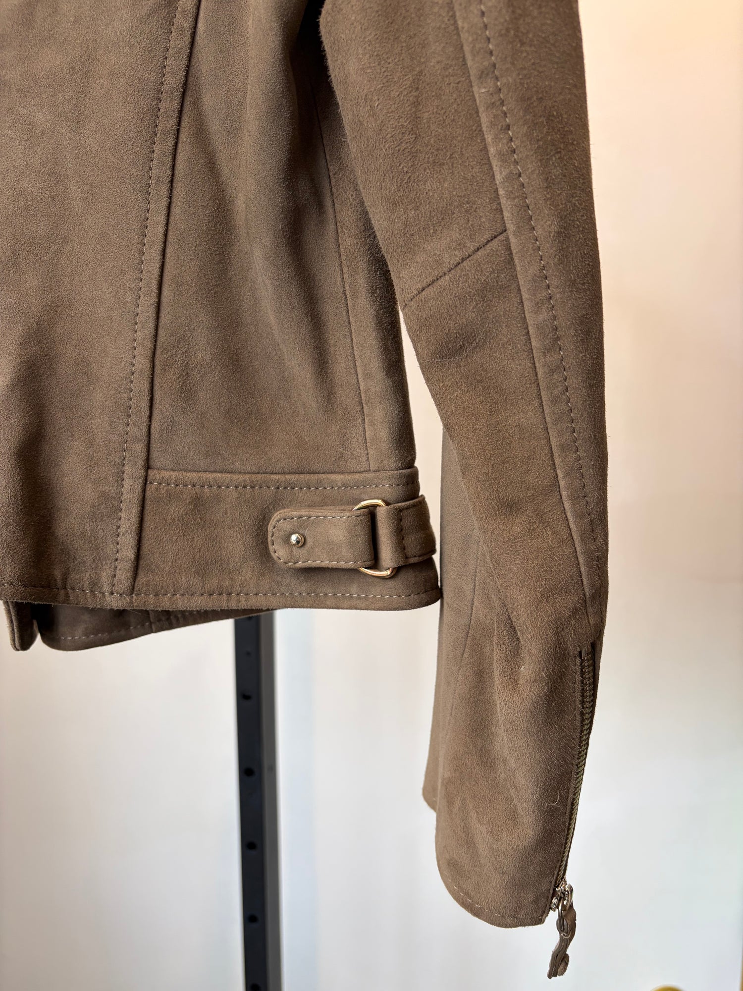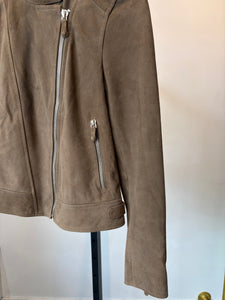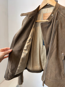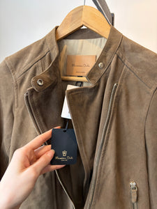 Massimo Dutti Suede Biker Jacket, Taupe, XS