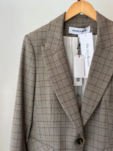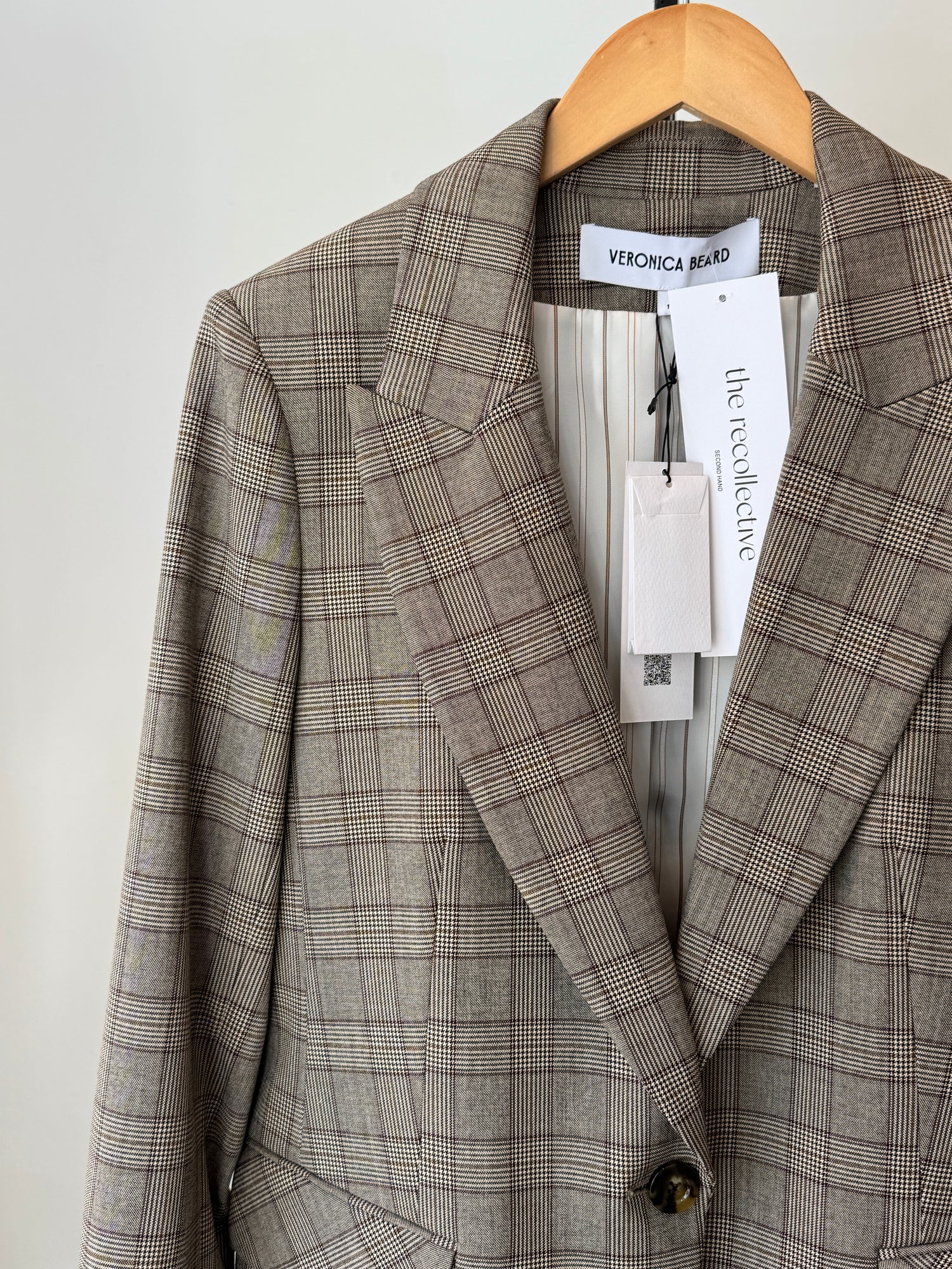 Veronica Beard Long and Lean Plaid Dickey Jacket, Brown, 12