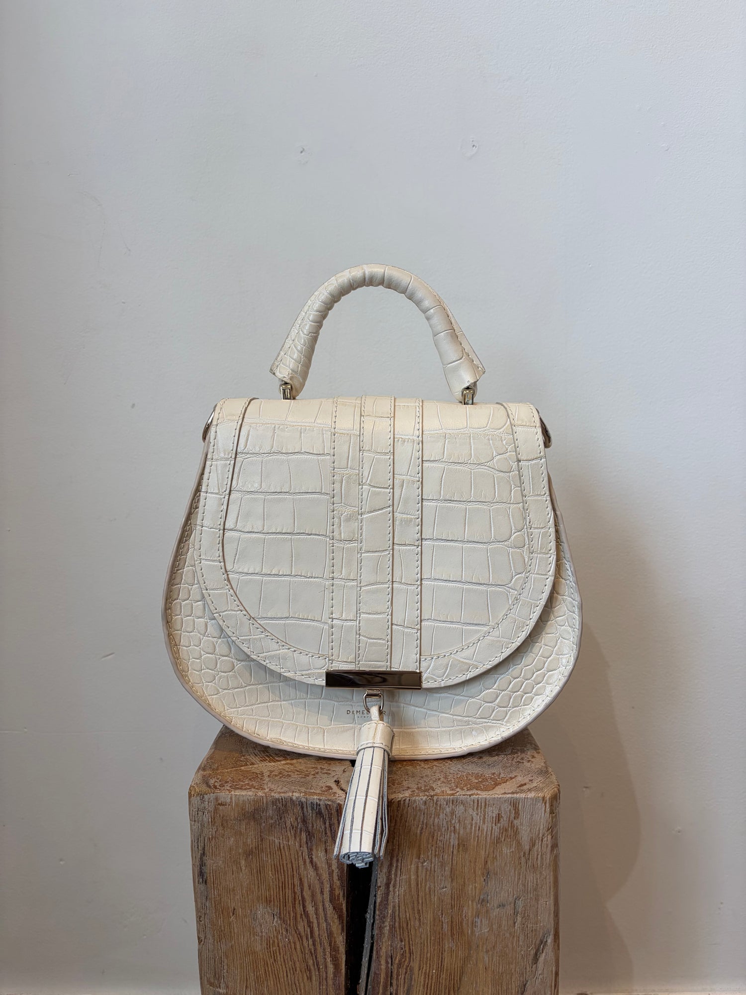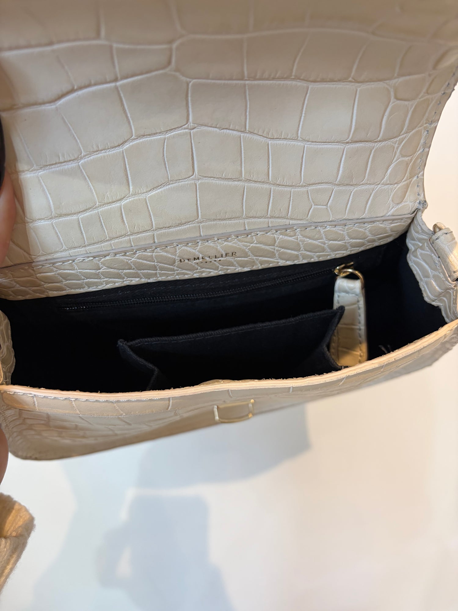 DeMellier Croc Effect Mini Venice Saddlebag, Cream