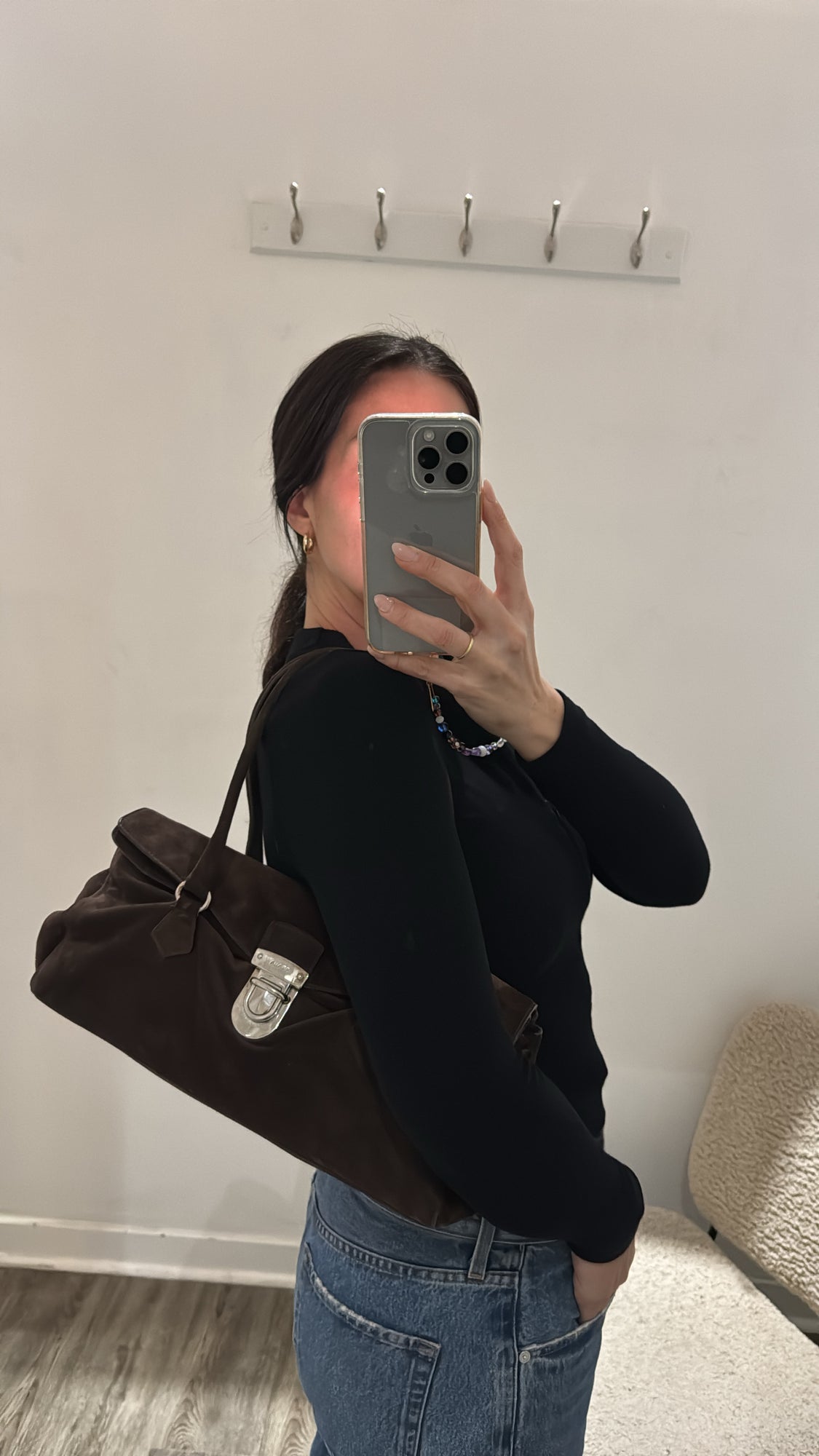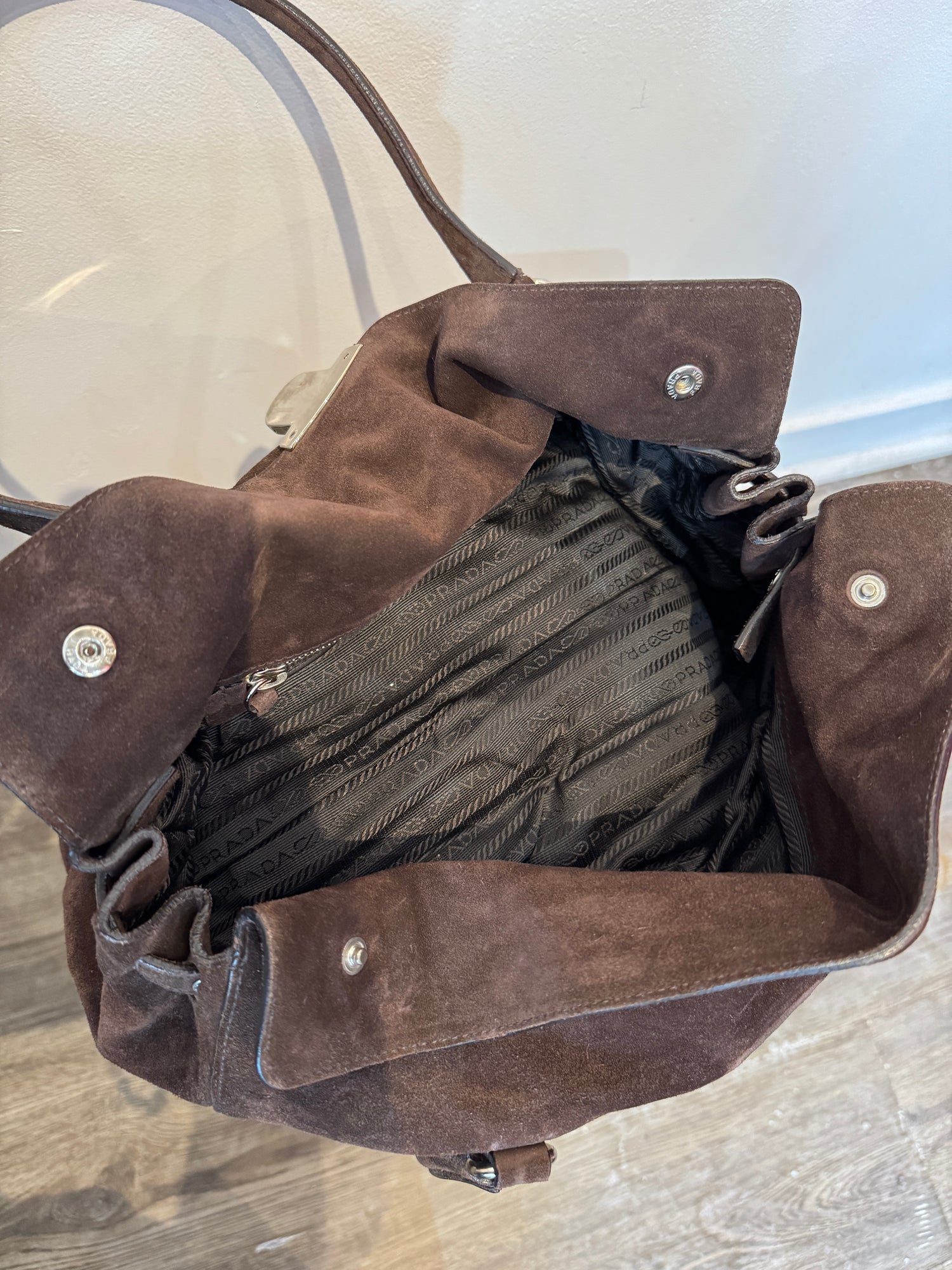 Prada Moro Suede Camoscio Easy Shoulder Bag, Brown