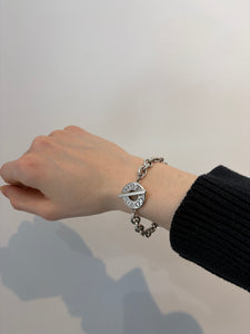 7.5” long. Chain measures 6.75”. Includes 1 chain link extension piece and dust bag.